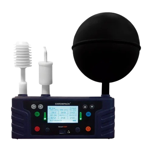 Nosso termômetro Globo SmartTemp (Monitor de Estresse Térmico) é um equipamento aplicado para aumentar a qualidade das operações de medições de conforto e de insalubridade no trabalho, atendendo as exigências da NR15, NHO 06, ACGIH e ISO 7243. Realiza as medições de bulbo seco, úmido e de globo, realizando o cálculo IBUTG automaticamente.